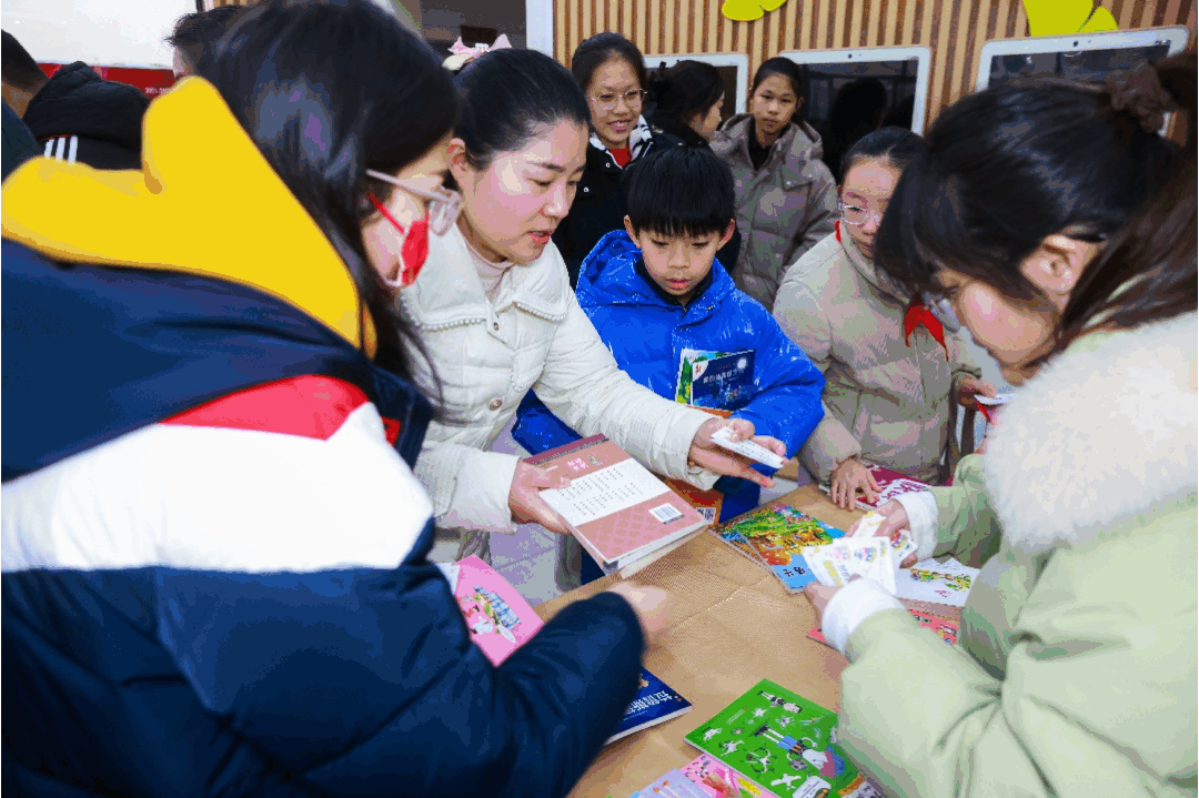 06 延续:书市传递温情,三月再赴约定 活动在温馨的氛围中接近尾声,但阅读的旅程从未停止。随后开启的“小银杏爱心漂流书市”,成为孩子们交换好书、传递知识的流动空间;书法社团学员现场书写福字,为所有人送上墨香萦绕的新春祝福。
