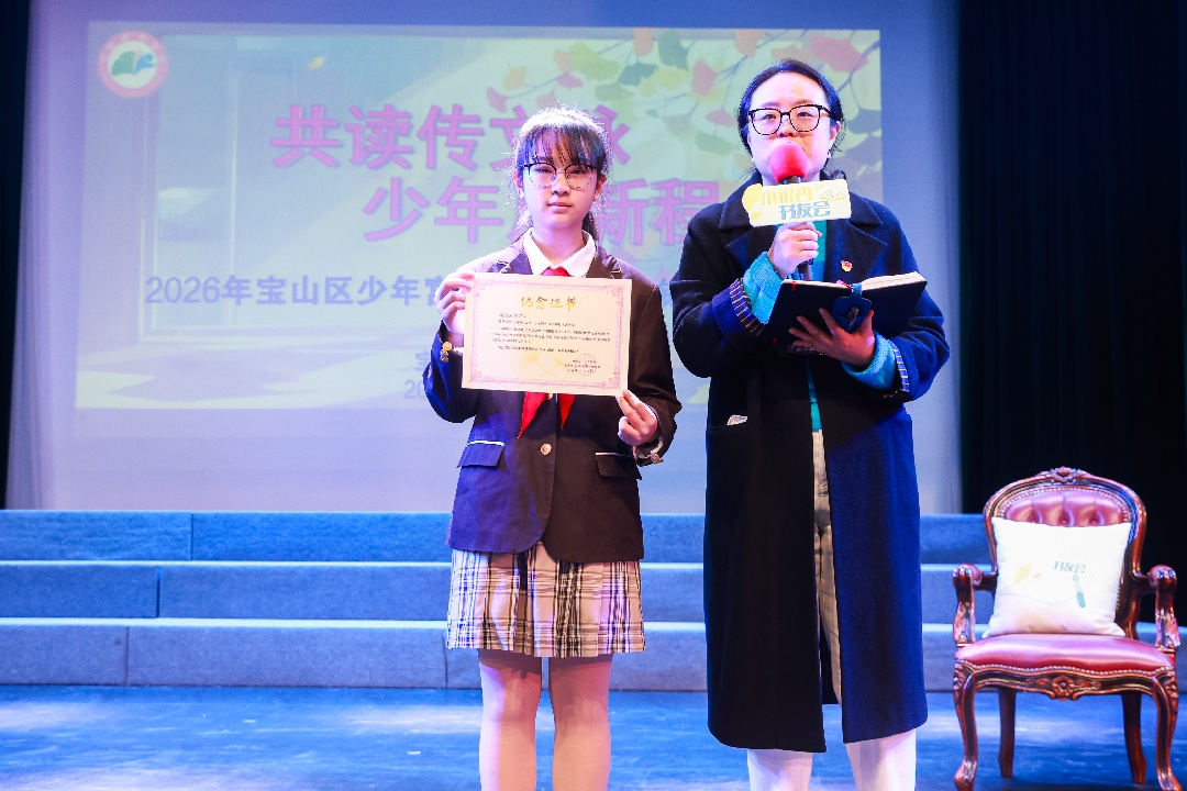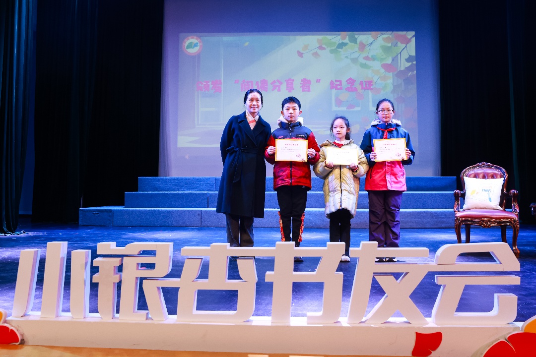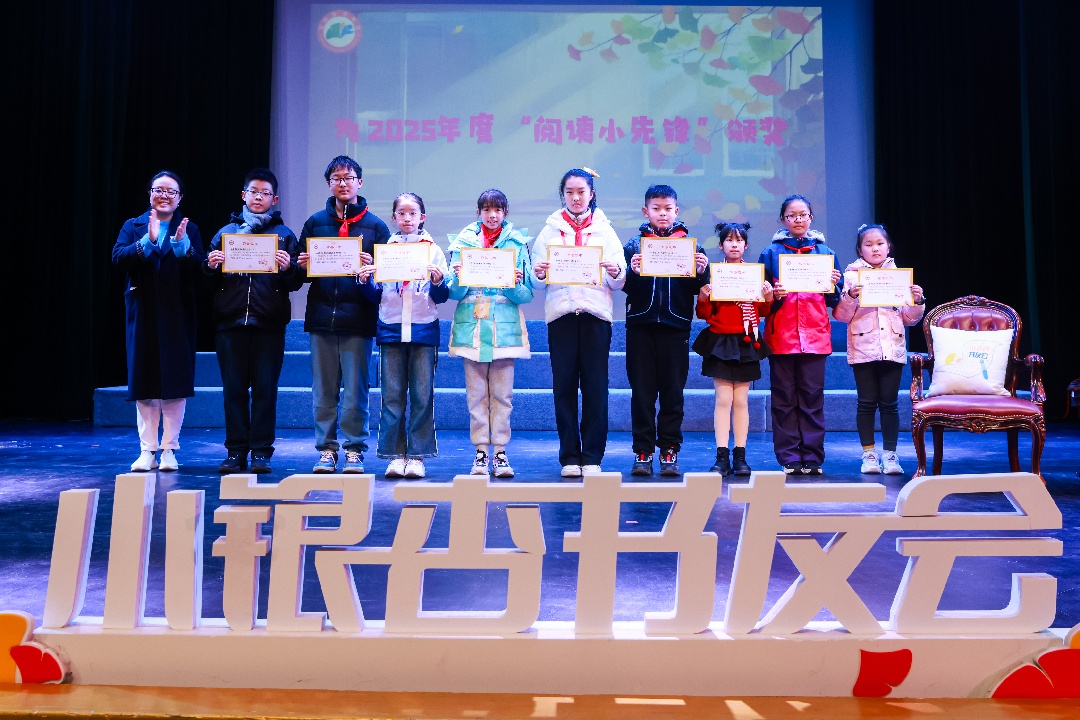 此外,现场还隆重表彰了2025年度“阅读小先锋”。十位在过去一年中积极投身阅读活动、主动分享、热心服务的小书友获此殊荣。宝山区少年宫书记、主任张婷妹老师为他们颁发证书,并寄语他们始终保持对阅读的热忱,在书页间邂逅新知、收获成长。